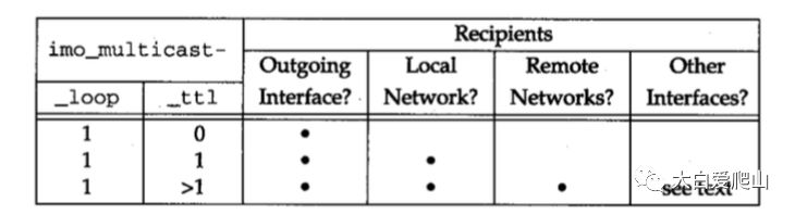 如果imo_multicast_loop是0,就是不回送数据报,也不把数据报提交给正在发送的接口,即使该接口是多播组的成员。如果imo_multicast_loop是1,并且如果正在发送的接口是多播组成员,就把多播数据报回送给该接口。