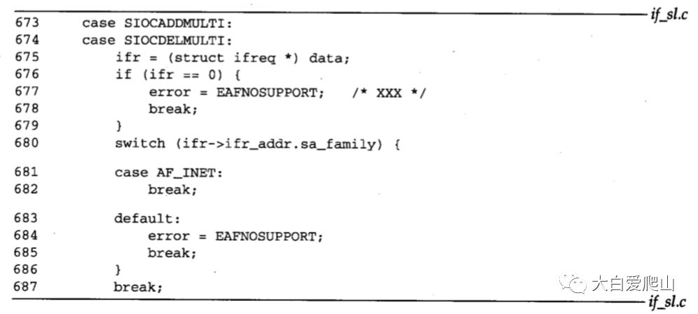 673~687 不管请求为空还是不适用于AF_INET协议族,都回返EAFNOSUPPORT。
