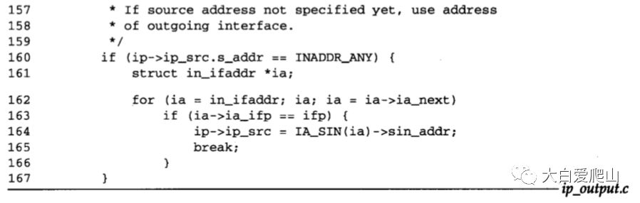 156~167 如果没有指定源地址,则由for循环找到与输出接口相关的单播地址,并填入IP首部的ip_src。