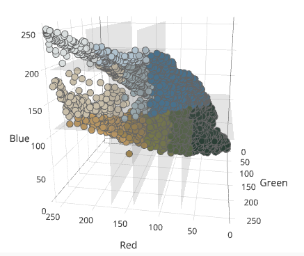 找到 median point,然后切割成两个分组A1 和 A2,然后再找到最大的一个组(比如A1),计算差值找到 median point, 继续切割成A3,A4,现在我们有了三个分组(A2,A3,A4),继续找到最大分组切割,直到达到所需的颜色数量 N。然后得到 N 个分组,这 N 个分组的 median point 的颜色值即为要求的颜色值。颜色比例即为 N 个分组的大小比值。