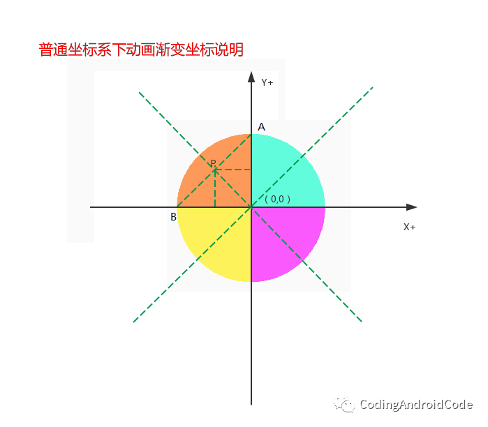 切换坐标系到我们的View坐标系内,假设P点坐标为(x,x),x取值范围为0到R/2,从而我们可以确认得到左上角路径上的P,A,B三点坐标,其中: