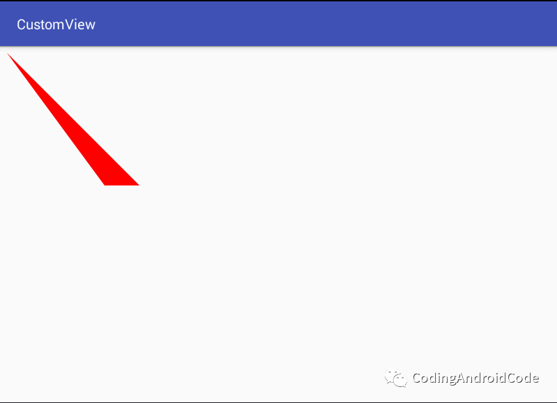 //第一个参数为路径对象,第二个参数为画笔canvas.drawPath(mPath,mPaint);再次运行,我们可以看到界面上有一个实心红色三角形,如下图: