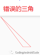 @Override protected void onDraw(Canvas canvas) { super.onDraw(canvas); canvas.drawLine(10,10,200,200,mPaint); canvas.drawLine(200,200,150,200,mPaint); canvas.drawLine(150,200,10,10,mPaint); } private void init(){ mPaint = new Paint(Paint.ANTI_ALIAS_FLAG); mPaint.setColor(Color.RED); mPaint.setStyle(Style.FILL); }手抖一运行,秒打脸,结果是图-错误的三角