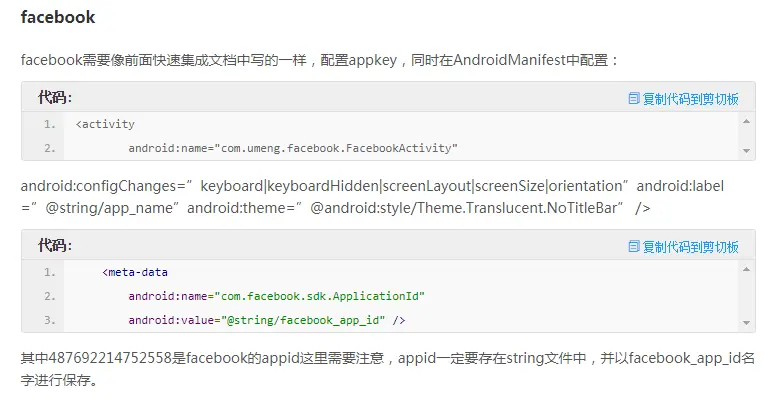 初始化代码,Facebook有些特殊,不是在代码中配置,如下图所示,文档还乱了,不吐槽了,理解万岁;