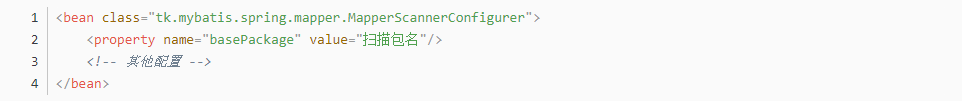 在集成 Spring 的环境中使用 MyBatis 接口方式时,需要配置 MapperScannerConfigurer,在这种情况下使用通用 Mapper,只需要修改配置如下: