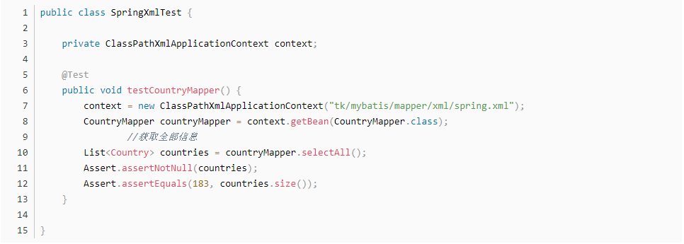 下面是一个简单的测试用例,实际使用中,可以直接注入 CountryMapper。