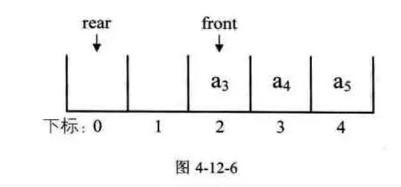 刚才的例子继续,图 4-12-5 的 rear 可以改为指向下标为 0 的位置,这样就不会造成指针指向不明的问题了,如图 4-12-6 所示。