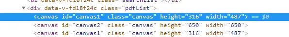 至此页面上就会多出一个canvas节点并且显示当前pdf文件的第一页的图片,如果当前pdf文件有多页就会渲染出多个canvas节点,有多个pdf文件就会先循环外层,然后再循环内层,把每个pdf文件的每一页都生成一个canvas节点