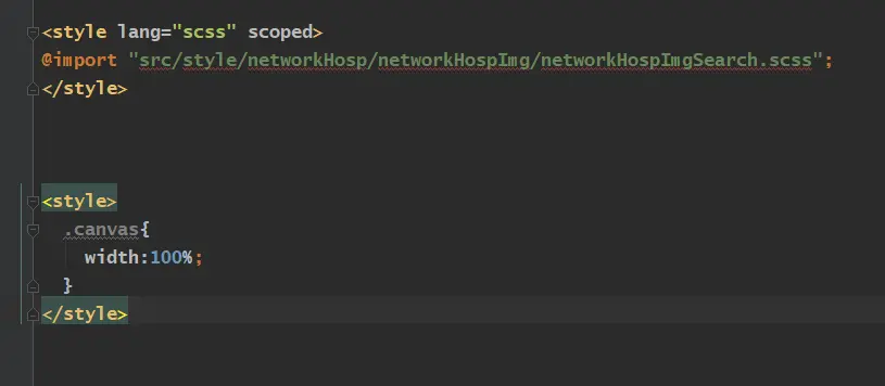 我们这里可以在这个style下面再创建一个style写入样式来达到修改canvas样式的效果,但是记得这样做你整个项目里面类名叫canvas的都会获得这个样式,需要注意