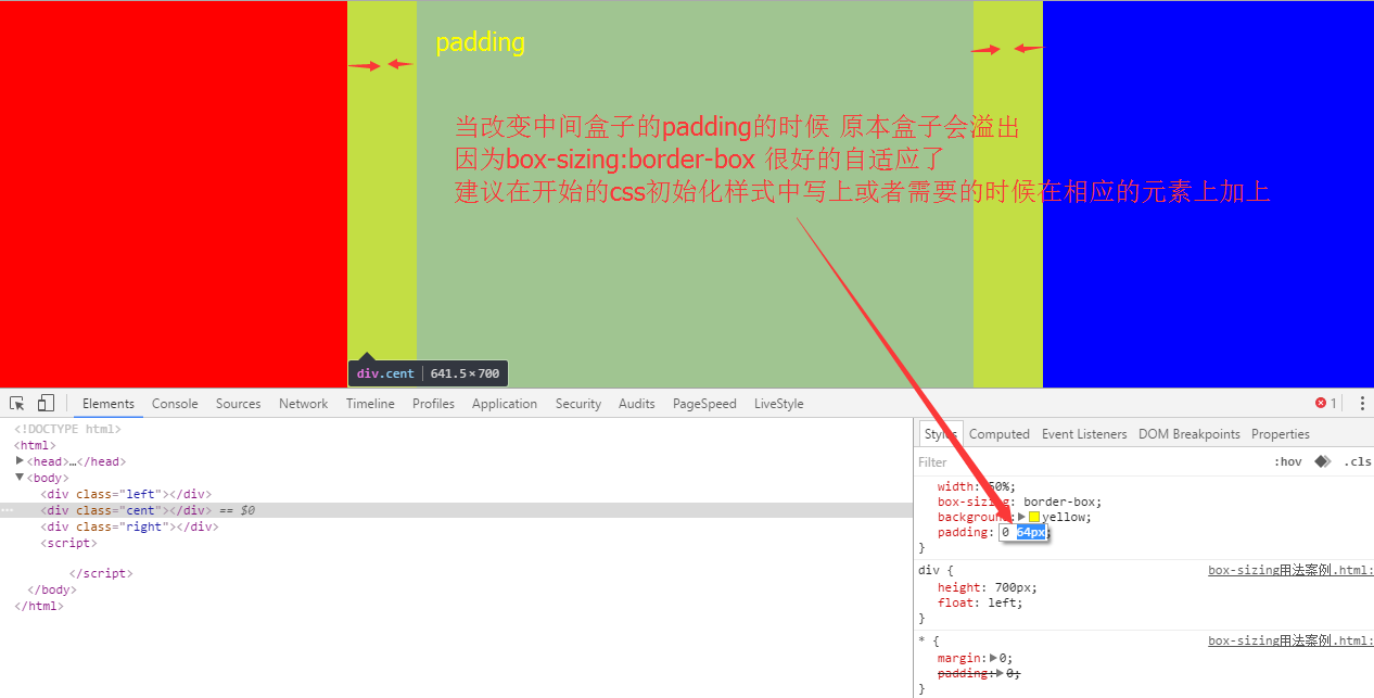 box-sizing:border-box;/*可以改变元素以使其宽度包含填充*/