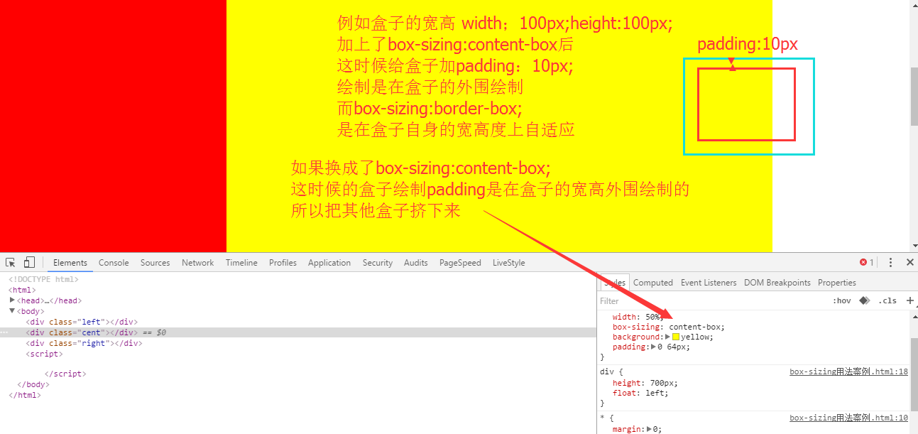 padding:0 20px; /*加了这个会使盒子内容溢出 但是box-sizing很好的自适应了*/