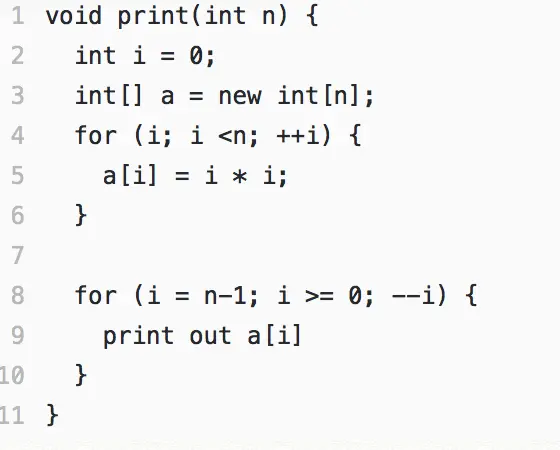 第2行申请了一个常量的存储空间,3行申请了n个存储空间之后仅是使用没有占用更多空间。同时间复杂度得出它的空间复杂度O(n)。