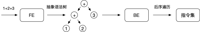 那么当我们输入程序 1 + 2 + 3 时,它的编译过程为: