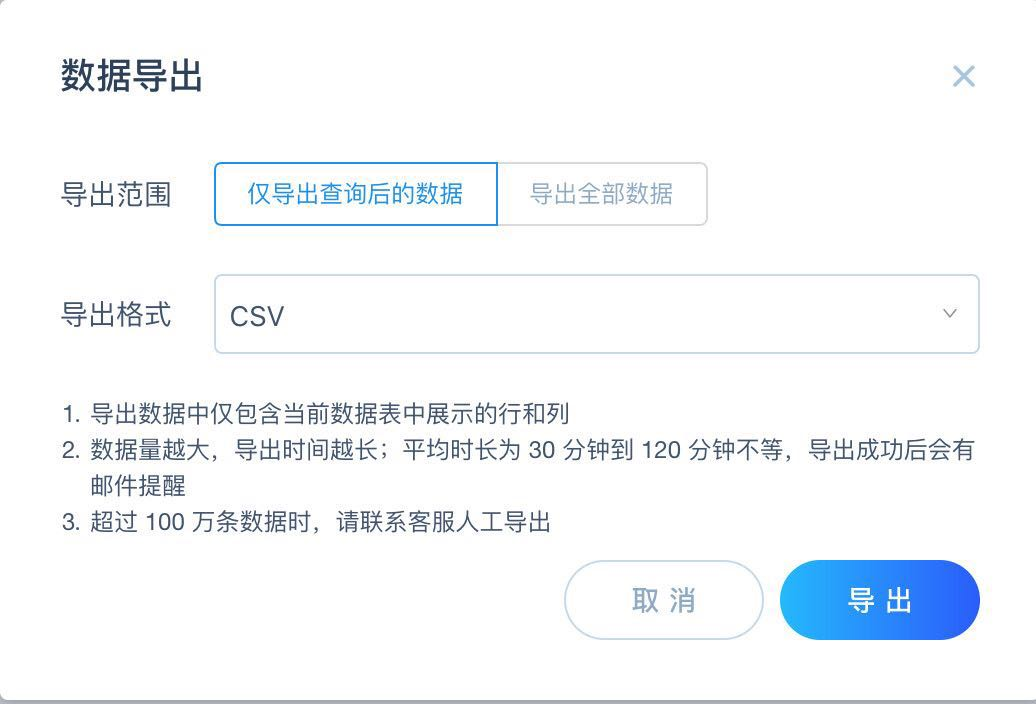 - 导出数据支持设置查询条件,你可以先使用数据表查询功能过滤掉无效数据再行导出啦