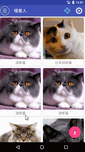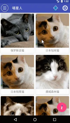 现在我们要处理首页活动 RecyclerView 的点击事件,当点击某只猫时,打开它的详情活动页: