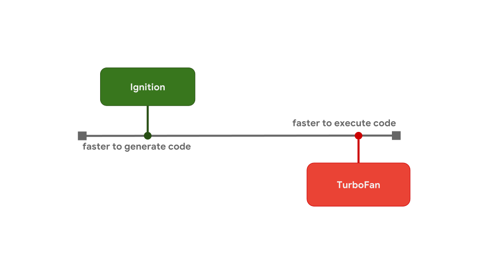 这正是 V8 在使用的模型。它的解释器叫 Ignition,(就原始字节码执行速度而言)是所有引擎中最快的解释器。V8 的优化编译器名为 TurboFan,最终由它生成高度优化的机器码。