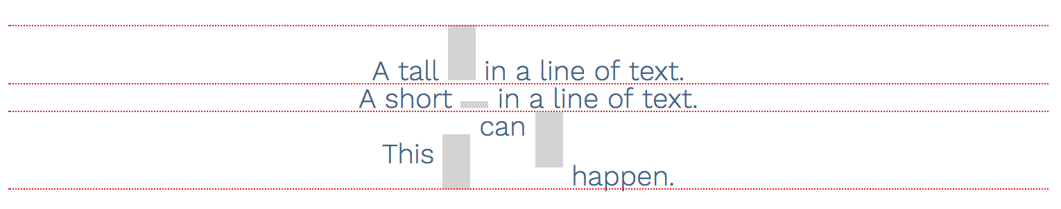 这次可以看清问题所在了。因为左侧的情况是文本没对齐,而是仍然位于基线之上。应用vertical-align: middle,实际上会导致图标中心与不出头小写字母的中心(x-height的一半)对齐,所以出头的字母会在上方突出出来。