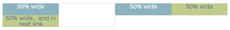 在前面列表项的例子中也可以看到这个间隙。这个间隙来自你的标记中行内元素间的空白。行内元素间的所有空白会折叠为一个。如果我们要通过width: 50%实现并排放两个行内元素,那这个空白就会成为障碍。因为一行放不下两个50%再加一个空白,结果就会折行(左)。要删除这个间隙,需要在HTML中通过注释删除空白(右)。