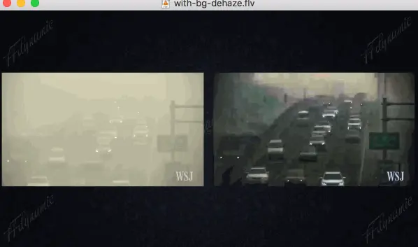 解复用后将视频流送入视频解码器,解码后的帧一路送入去雾模块,另一路送入video mix模块;去雾后的数据也输出到video mix模块,经mix后编码保存。效果如下: