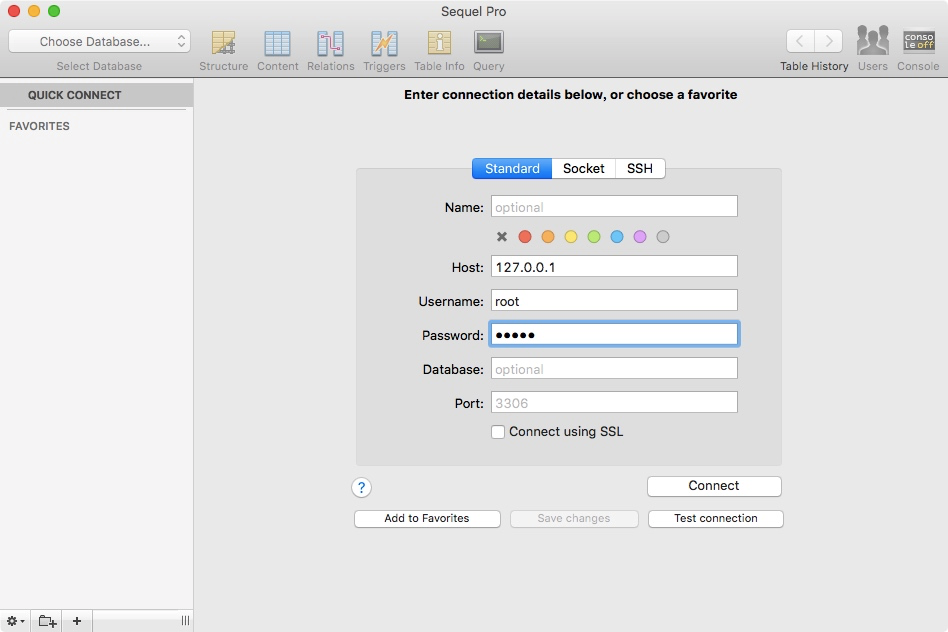 4、启好MySQL之后,我选择了Sequel pro这个软件来操作数据库。