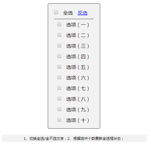 ocheckAllLabel.innerText = ocheckAll.checked?'全不选':'全选';