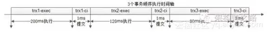 第三个事务执行80ms,提交1ms;