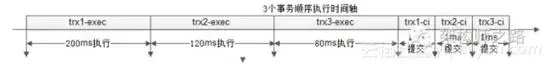 图片描述(最多50字) 第一个事务执行200ms,提交1ms;