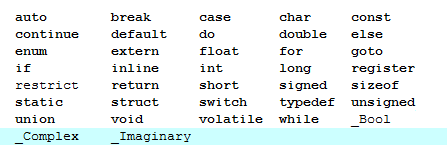 这里附上C语言中的关键字,即用作专用的定义符,也称为保留字。