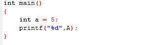 出现这种情况编译器会将a和A认为是两个不同的变量,因而报错。因此在定义变量和输出变量的同时要注意大小写字母的一致性。因为C会将大写字母和小写字母看成是不同的字符。