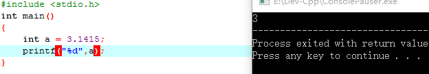 例如:我们要输出一个a = 3.1415的情形。如果数据类型使用错误,将得不到我们想要的结果。使用整型,将只输出3。必须使用浮点型float,double,long double。