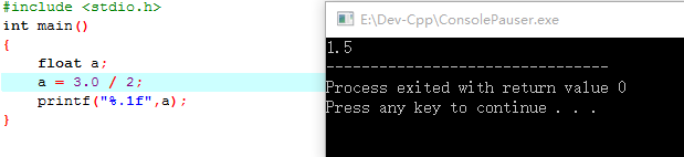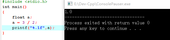 尽管定义了浮点型但是结果却是1.0,而不是我们想要的1.5。为得到1.5的结果,我们必须将3/2改成3.0/2,或者是3/2.0.才能输出1.5的结果。