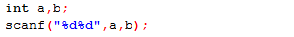 scanf()函数一般以空格键,Tab键或Enter键作为分隔符,当格式中字符传中存在非格式字符时,输入时也需要一并输入。例如: