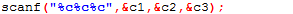 字符“a”赋给c1,字符“ ”赋给c2,字符“b”送给c3,因为%c只要求读入一个字符,后面不需要用空格作为两个字符的间隔。