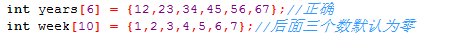 1.数组后面的元素个数应与声明的一致。如果与声明不一致,超出声明后面的数字默认为0。
