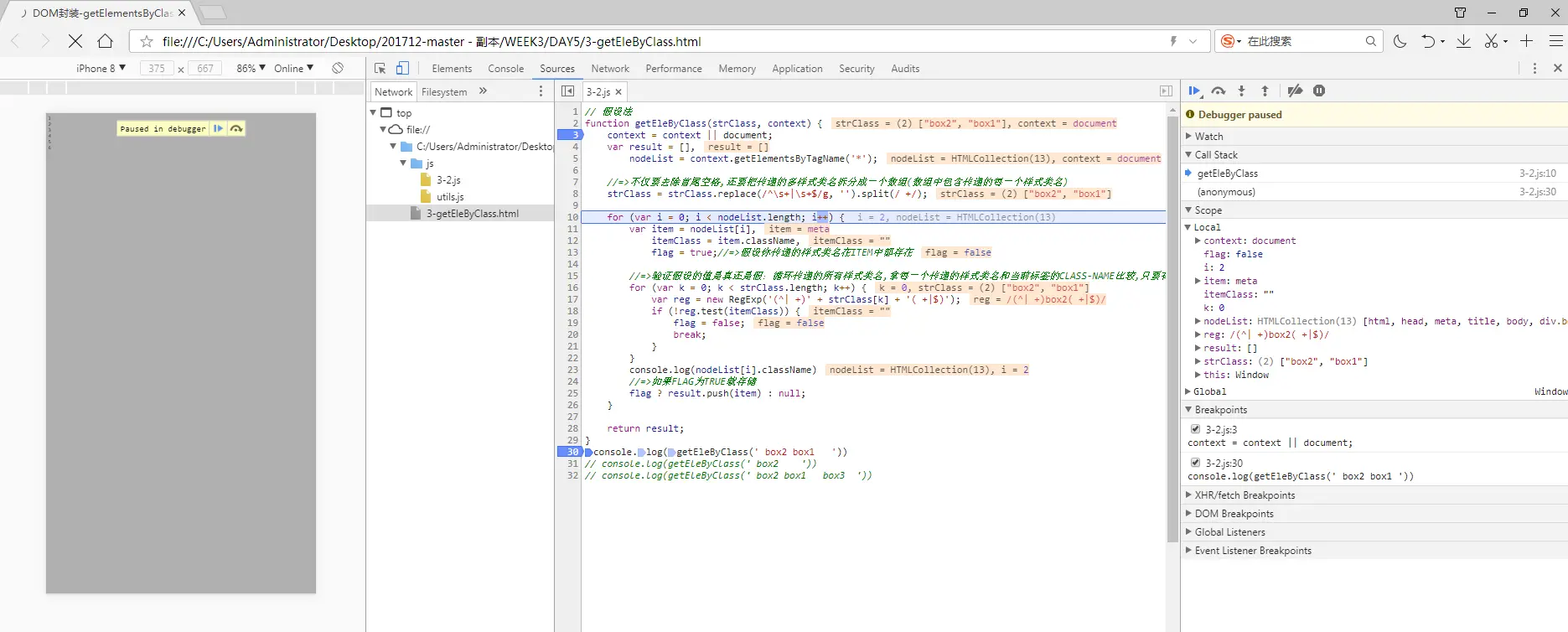 2、DOM封装-getElementsByClassName兼容处理之传递一个样式类