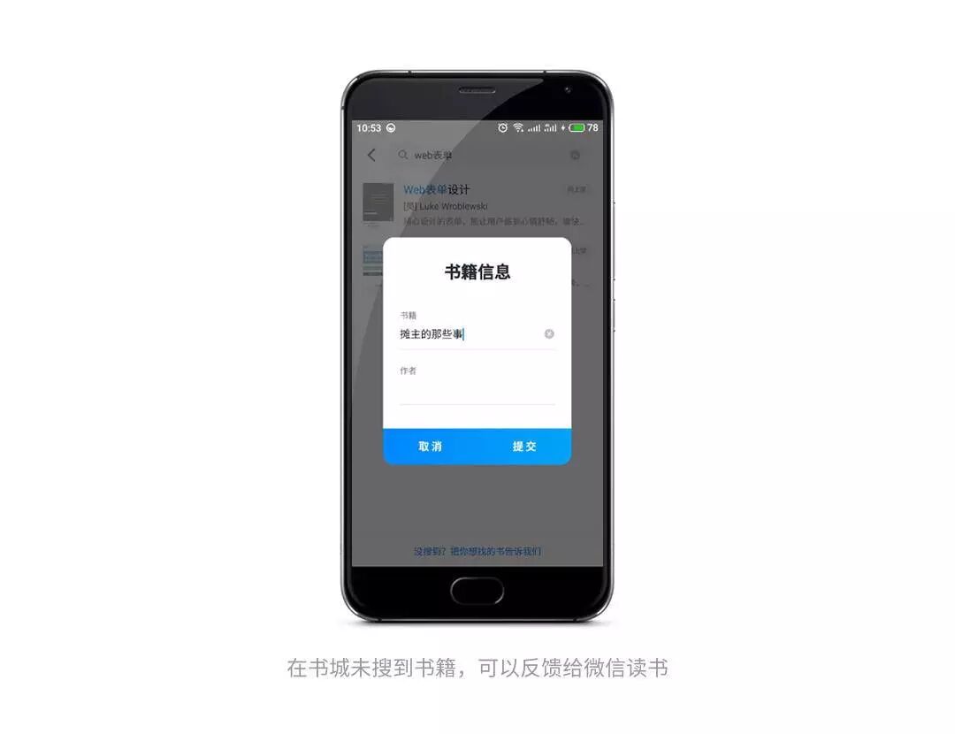 另一方面,放权于用户,让用户感到尊重,提交书籍,给读者一种微信读书时刻关注个人需求,在尽力满足用户所有需要的感觉,让用户觉得你好贴心![]()