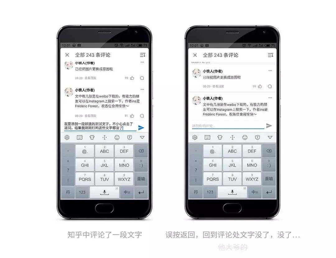 当我想要在知乎上来段评论,输入了几十个文字,认真检查,突然一个手抖不小心按了返回键,抱着忐忑的心情再次回到评论界面,高潮来了,boom,之前填写的项全被被清空了!!![]()