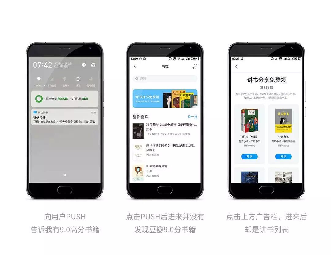 利用微信强大的好友关系链,推送好友正在阅读的书籍给用户提供全新选择。