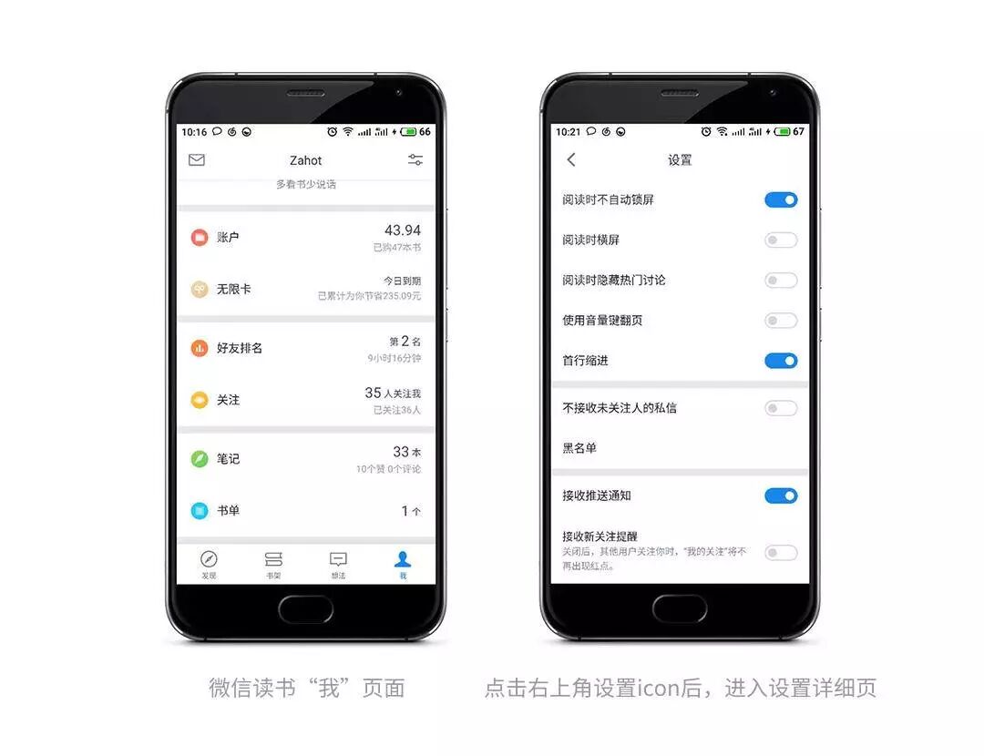以微信读书“我”页面来说明下信息分类