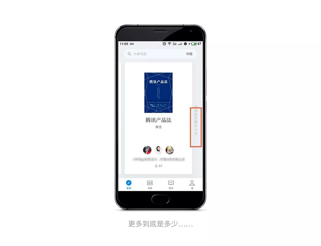 如果将交互形式改为“左滑进入书城”则更符合用户的预期,毕竟我在这滑拉半天,看了你推荐的书籍,没有感兴趣的,你还不直接让我去书城逛逛?你想让我滑到手指抽筋么?