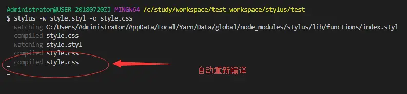 stylus -w xxx.styl -o xxx.css //在原有的基础上加了-w w的意思是watch,也就是监听