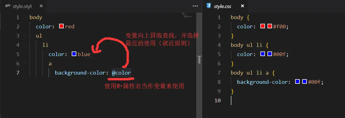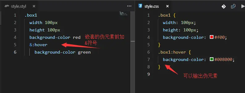 stylus支持嵌套语法,相当于后代选择器 - 父级引用