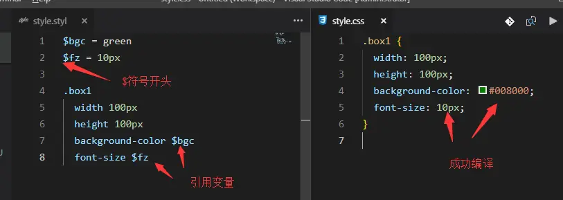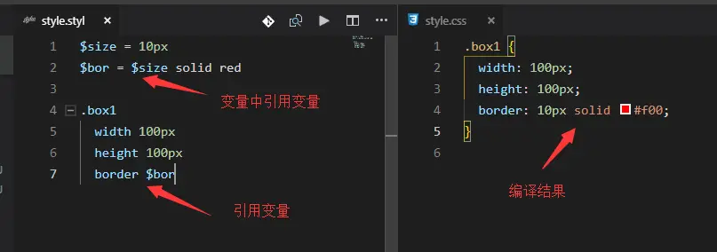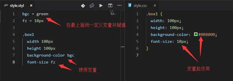 Stylus支持$符号来定义变量,如果你学过Sass的话应该会很有亲切感