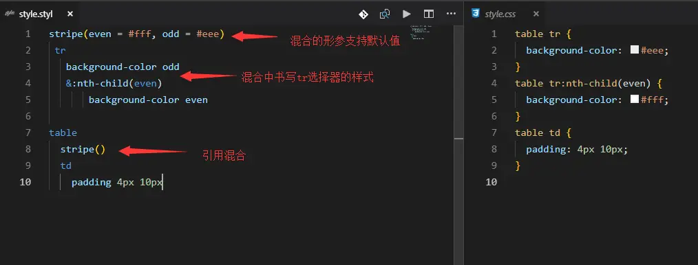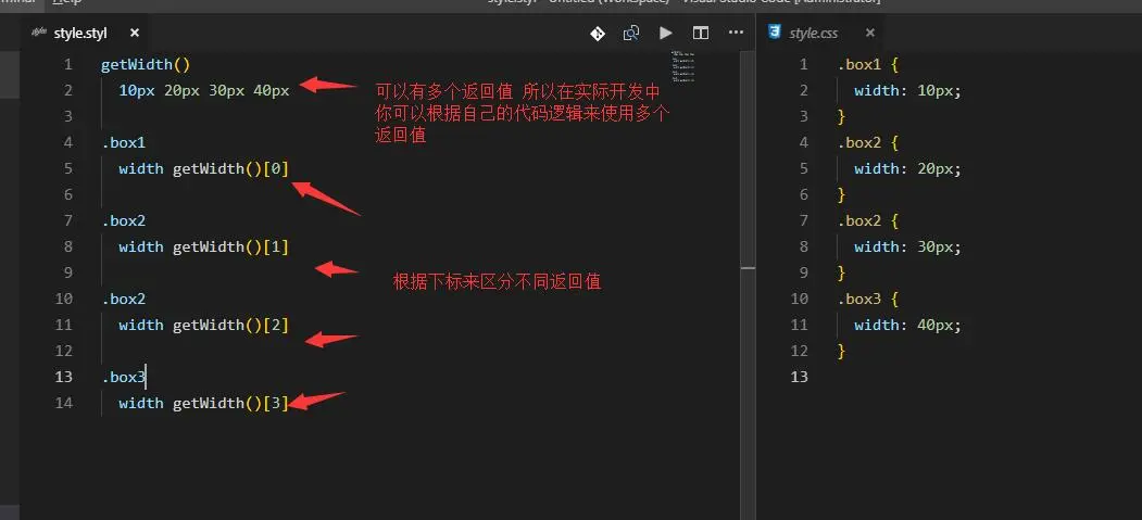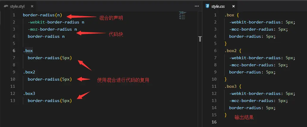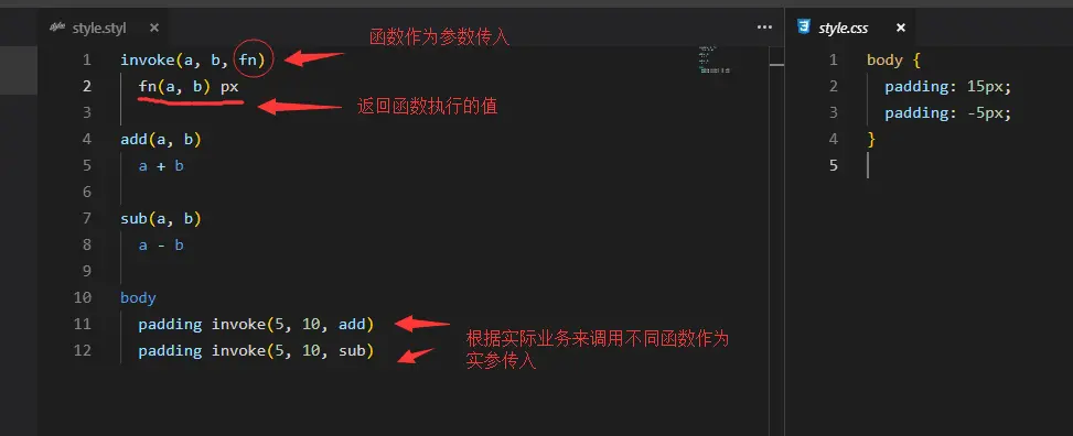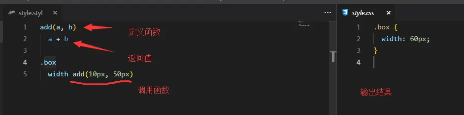 Stylus强大之处就在于其内置的语言函数定义。其定义与混合(mixins)一致,不同的是混合是引用是直接复用代码块,而函数引用则是将返回值返回。