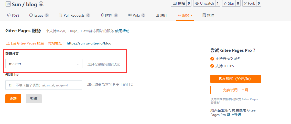 Gitee Pages设置