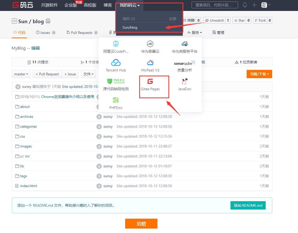 稍等一会儿博客就发布成功啦,访问博客地址:https://sun_xy.gitee.io/blog/ ,就可以问在线博客啦!!!