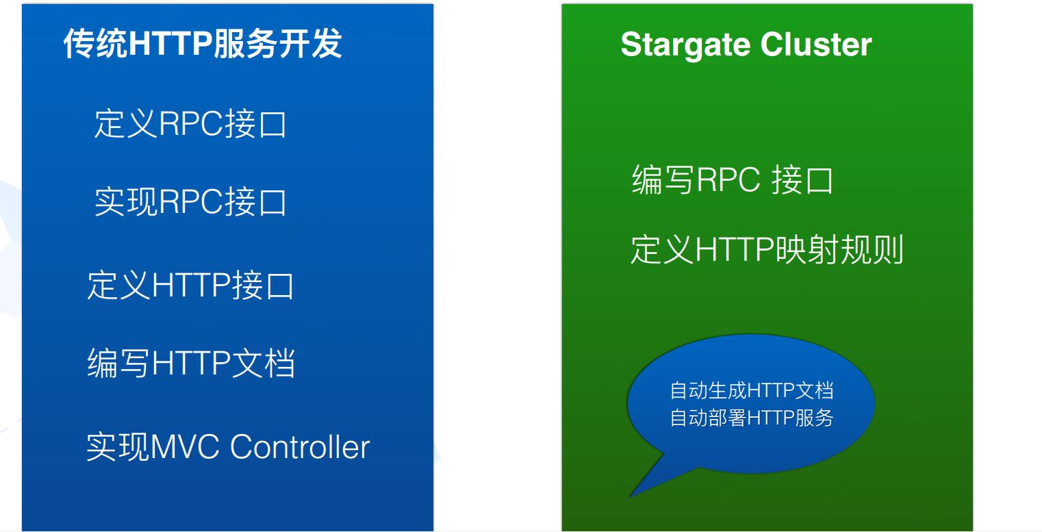 Stargate cluster支持http和cpc,开发者只需要提交接口定义,前端就可以进行工作