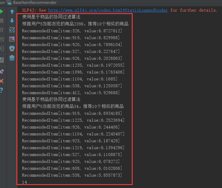 29 //构建推荐器,协同过滤推荐有两种,分别是基于用户的和基于物品的,这里使用基于用户的协同过滤推荐