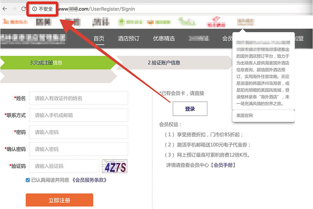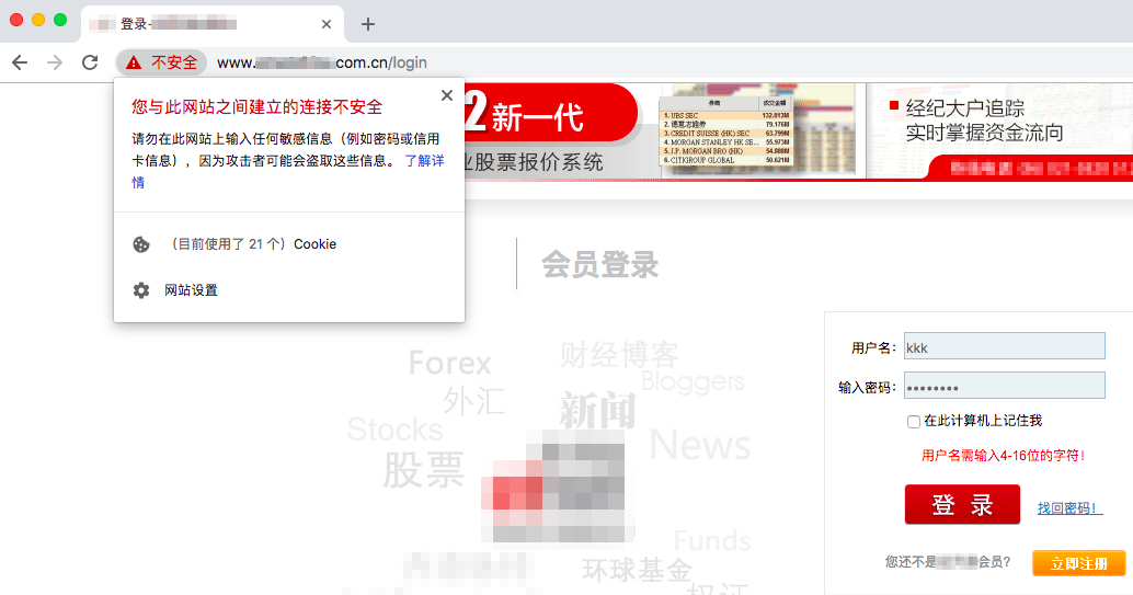 2、用户安全意识逐渐提高,95%的用户会因为[不安全]提示而放弃访问,从而造成用户流失。