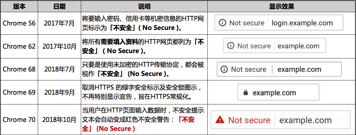 Google 对于网站应为HTTPS 一直以来不断推广,相关的执行时程表及政策如下: